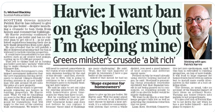 Nyaff Patrick Harvie wants us all to get rid of our gas boilers and buy heat pumps (which cost about £10,000)