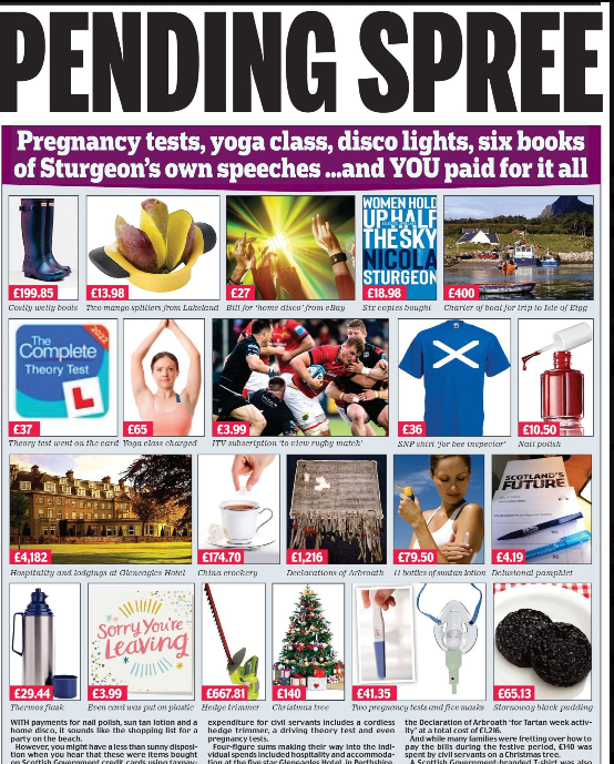 Not to mention the limo she summoned from the central belt up to Aberdeen to drive her about.