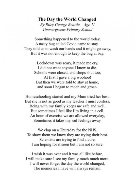 A poem written about the virus by 11 year old Riley George Beattie from Arbroath.