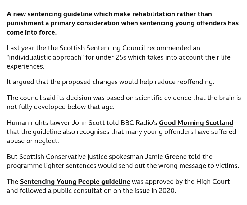 Look up SNP and sentencing for under 25's if it's not too taxing.