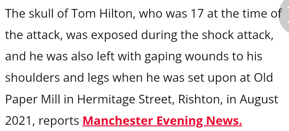All rumour and speculation of course but that's the kind of thing people like to spread. And why has Madeleine McCain been brought up? Re the assault he was involved in, nowhere does it say the victim's brain was exposed (correct me if I'm wrong). I'm not sure what the judge in the case was thinking when he said if they were guilty of section 18 GBH he would have issued a custodial sentence - you can't get any more GBH with intent than using a machete.