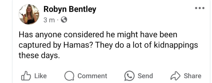 Some of his pals are going out to look for him, sounds like an excuse for a free holiday.