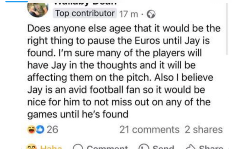 Jay has ran up a drugs debt and his disappearance is being faked while they fleece the public through the 'Go Fund Me ' appeal.