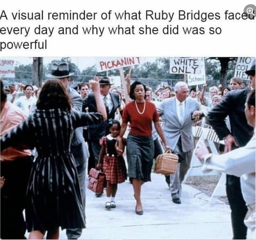 November 1960 - Ruby Bridges holds tightly to her mother’s hand as she enters into an angry mob to check into school each day. Ruby’s mom, Lucille Bridges made sure her daughter knew she was safe and was like a shield in every respect by her little girl’s side as she set out to change a nation.
