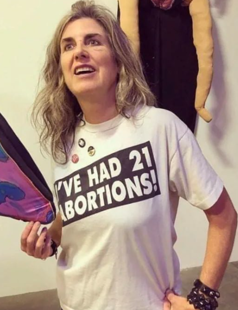 She hasn't had 21 abortions! That t-shirt is on sale from many outlets online, it's worn as a protest statement.