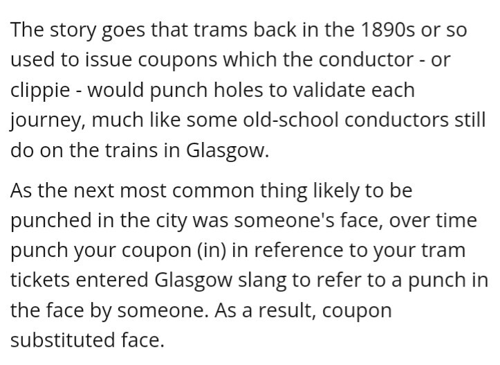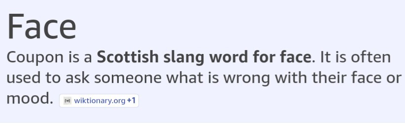 Yes, but why? There is usually some rhyming slang, or connection somewhere...coupon = face ??