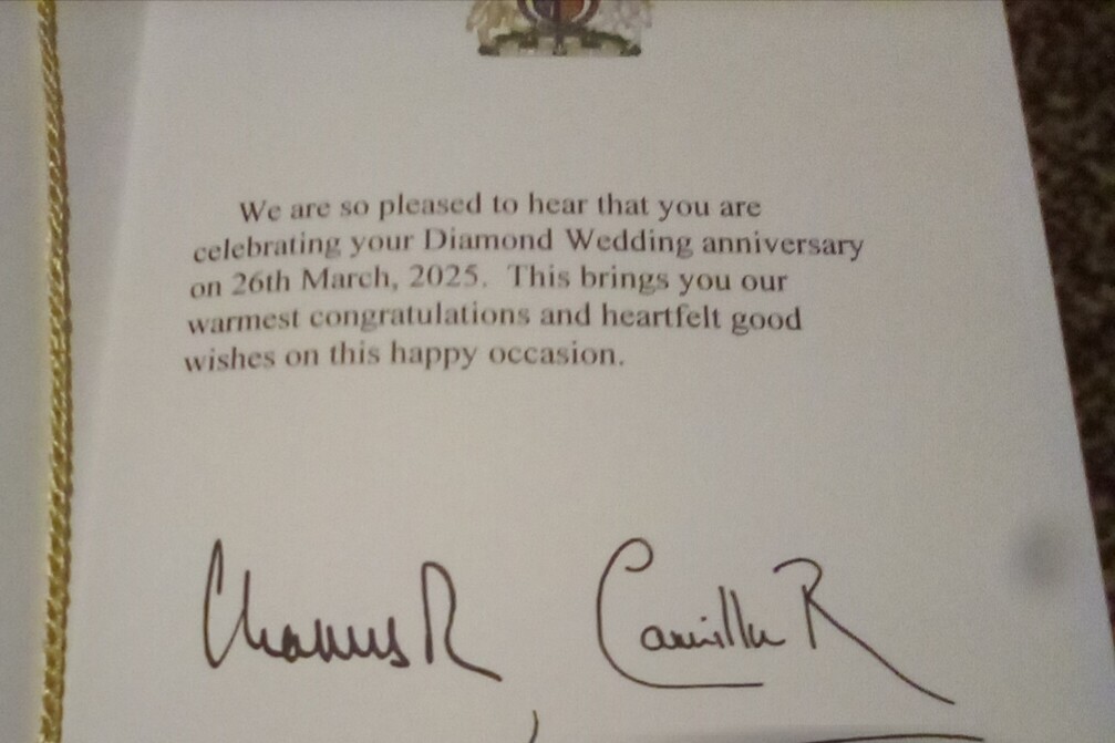 Maw and Paw are making a fortune with this Diamond Wedding business, every card has money stuffed in it.