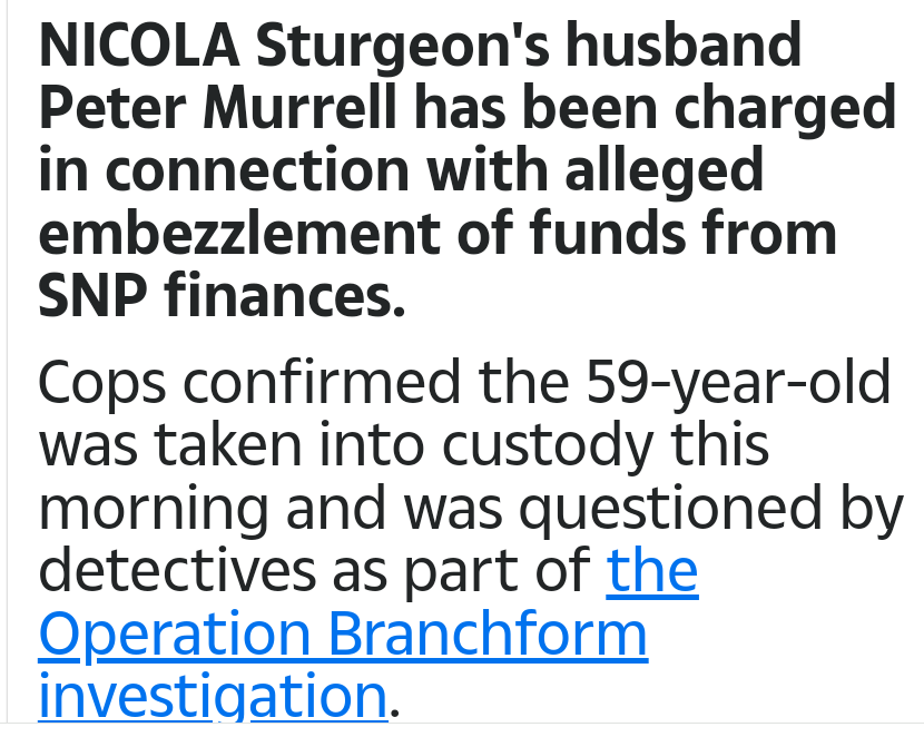 A report has been sent to the Procurator Fiscal, I do believe it's to do with donations supporters were sending the party to pay for a second referendum.