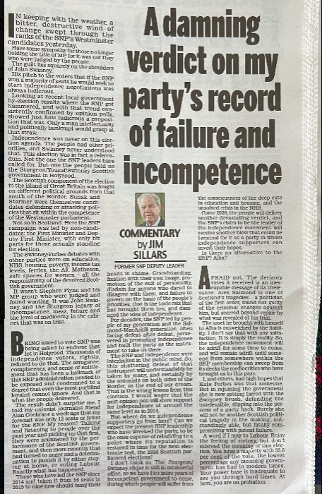 Jim Sillars has been delivering his verdict on the SNP humiliation last week and among other things has called Sturgeon 'Stalin's wee sister'