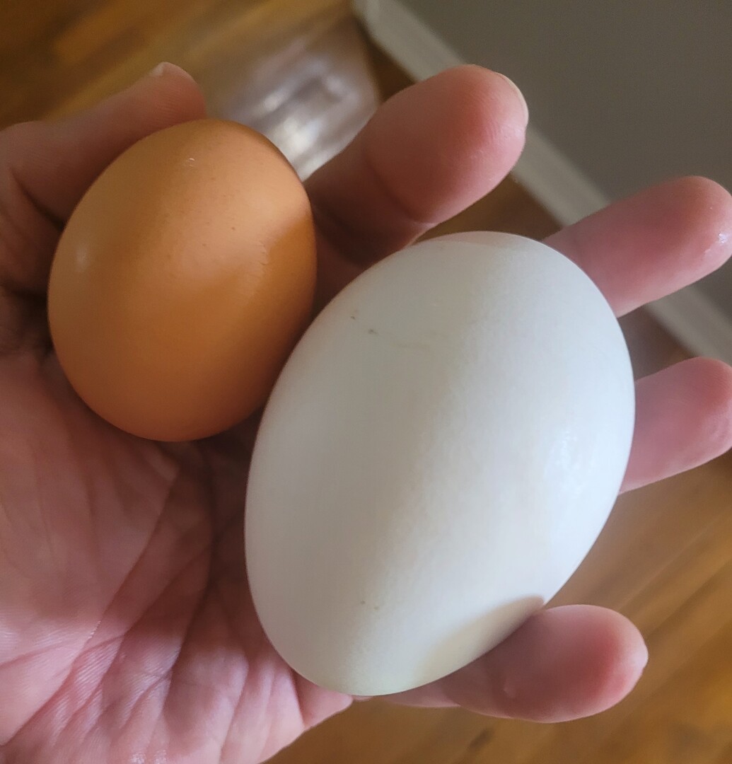 A friend brought over some goose eggs so I had a chicken and a goose egg for breakfast ..