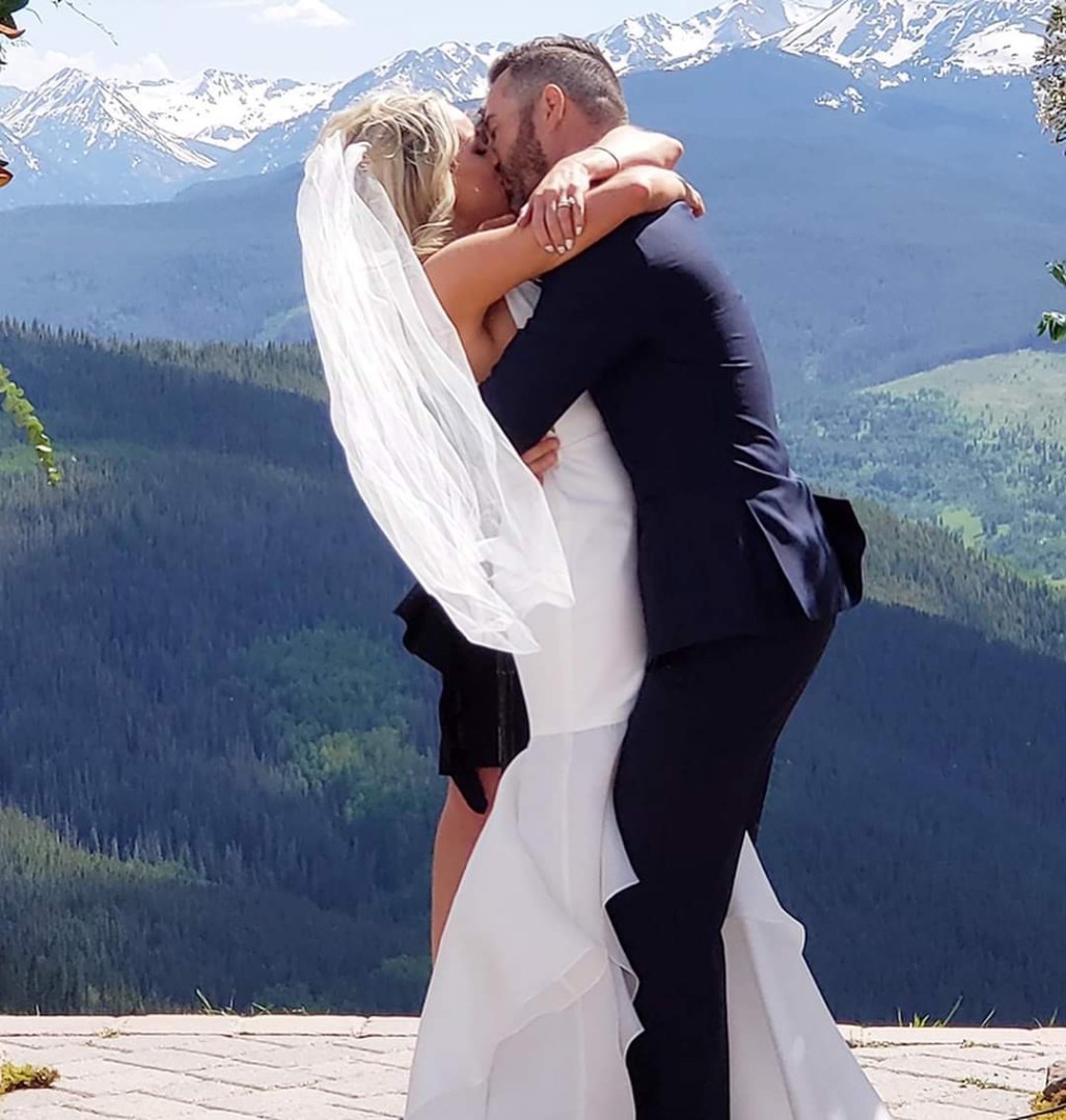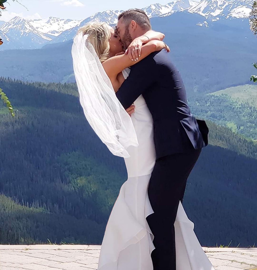 That's a lovely photo. It has great energy - the from the wildness of the surroundings to the passion of the newly weds.