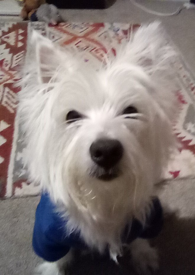 She needs a haircut but can't get one because the groomer as gone to Crufts with Walter.