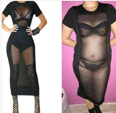 I hope she sends it back. Online shopping can have it's downfalls. What looks great on a size 10 18 year old model, who has probably been airbrushed or photoshopped, or whatever they do to enhance the photo, definitely won't look the same on a size 18 girl....who hasn't been photoshopped.