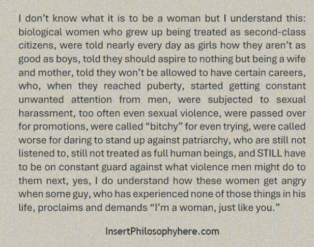 I feel for genuine transgenders, the ones who struggle from childhood, go through years of mental and physical torture, and likely transform quietly and try to live their new lives without fuss.