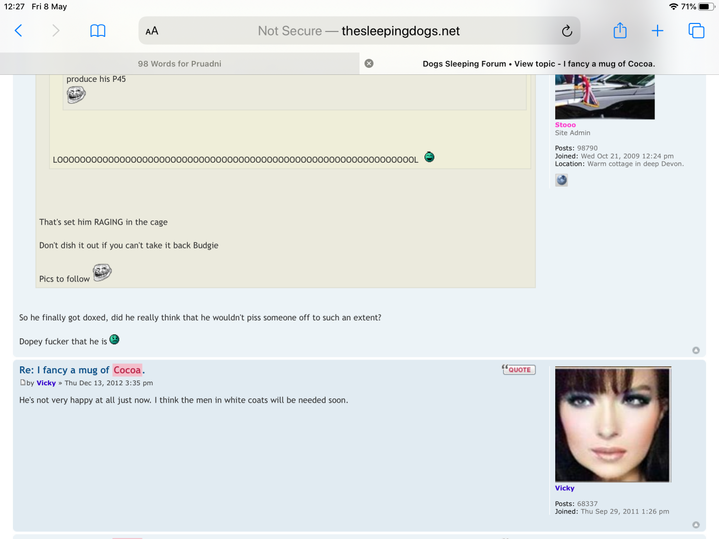 As I remember it, Drum was quite a nasty poster who loved to be in the thick of it. As some remember, it did get vicious and it was then that Drum decided to take a step back. Stooo claims that they were friends for a long time. But if memory serves me right. They were the best of enemies before that.