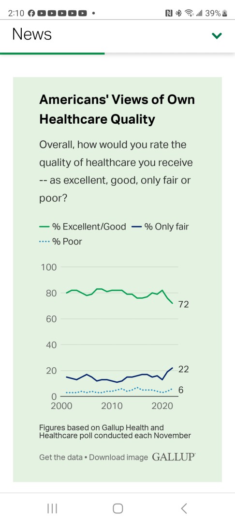 We're weird. We think the system sucks, yet we think it provides us excellent or good care.