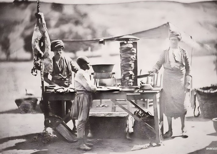 A nice photo for anyone who thinks a doner kebab is a modern thing. This historic photo was taken 171 years ago by James Robertson (1813-88) during his visit to Istanbul in 1853