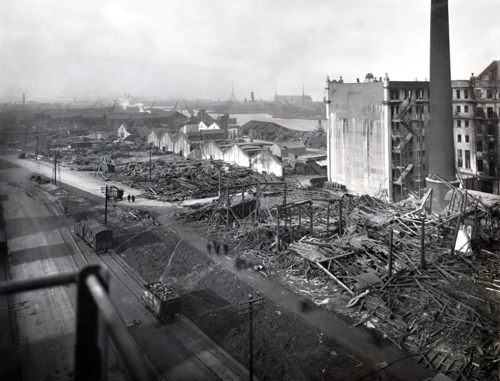 This is the largest explosion in London's history: It happened during the Great War, just before 7pm on Friday 19th January 1917. Fifty tonnes of TNT exploded at the Brunner Mond munitions factory in Silvertown, East London, devastating the Royal Victoria Dock, flattening 900 local homes and damaging nearly 70,000 buildings across the city. Burning debris scattered for miles, causing many fires and a gas cylinder explosion in North Greenwich. The fire could be seen as far away as Guildford, Surrey, whilst the shockwaves were felt in Norfolk and Southampton. The explosion killed 73 outright - including many local children - and over 400 people were injured by the blast, yet it is an incident few Londoners have even heard of.