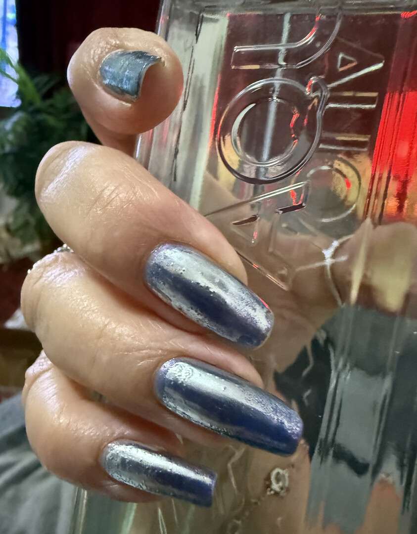 I just love Glitterbel chrome powders. This one is applied over OPI blue nail polish