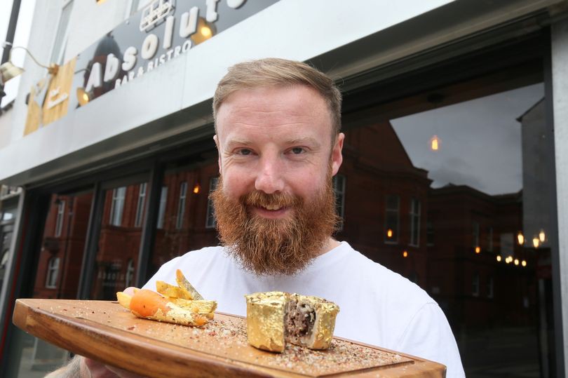 A Bolton chef has (for a laugh) covered his pork pies with gold leaf.