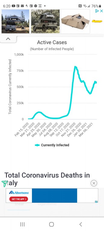 I also wanted to point out how easy it should be to get the jab at this point. While Europe is still working on their 65 and ups, we are giving shots to everyone. My 20 something secretary got hers last week.