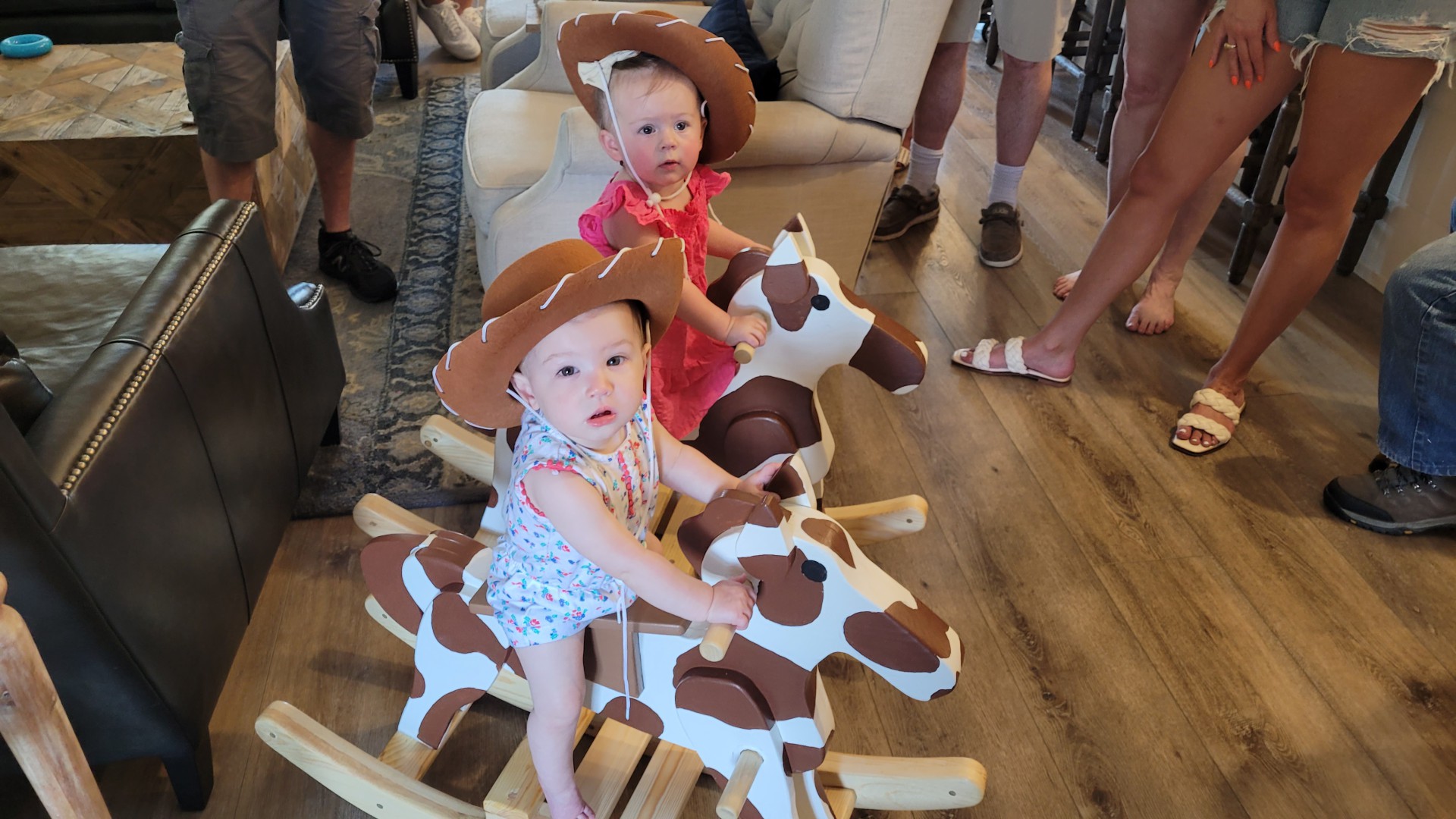 So, I finished building my rocking horses for these two little monsters just in time for Hallie's first birthday, which was yesterday. Mia turns one in 3 weeks.