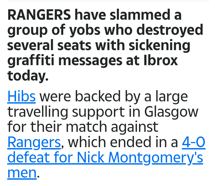 Rangers were playing the Scumbags Hibs at Ibrox yesterday.