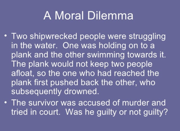 If the alternative is both dying, or you dying because someone has pushed you off the plank, there is no question that most people would try to survive.