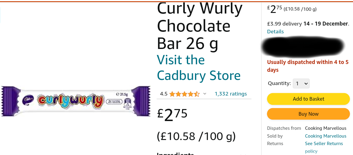 £2.75 for a Curly Wurly and £3.99 delivery!!