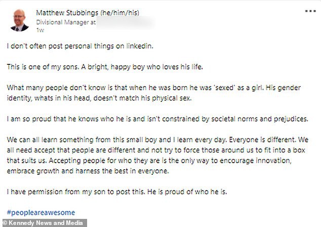 Stormy Stubbings knew they were a boy from eighteen months old, Stormy is now five.