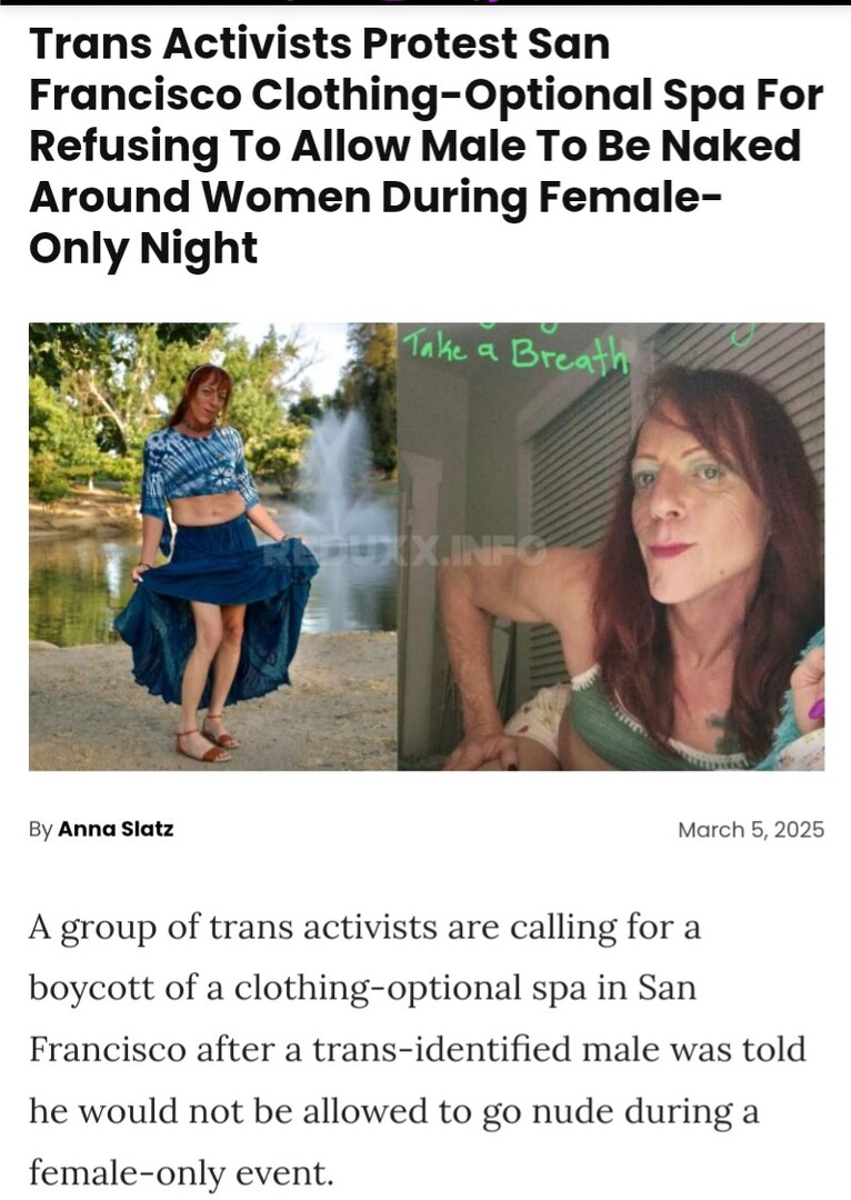 This madness will only stop when these freaks are not only turfed out, but ignored. At the moment they still cause outrage when some bloke in a frock tries to muscle in on female only spaces, hopefully soon the day will come when they are told to go away...and instantly forgotten about.