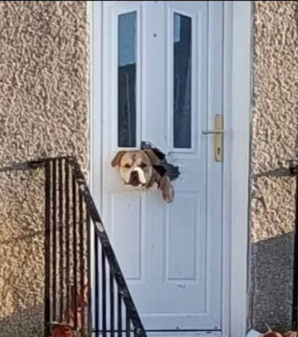 A dog in Kelty in Fife tried to make his escape by first chewing off the letterbox and then the rest of the door!!