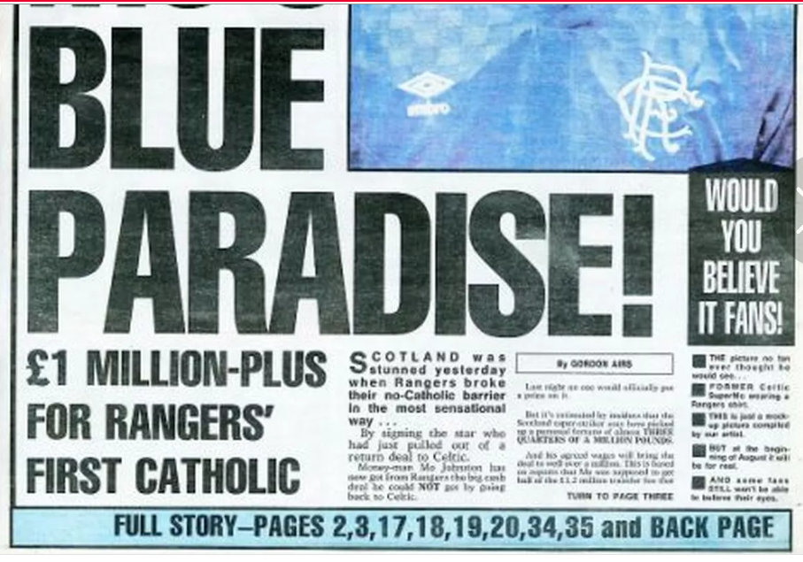 35 years in July since Rangers signed their first Catholic.