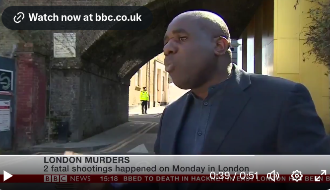 This Lammy dude is bumping his gums about how you never see any police officers round these parts and there's one in the background!!