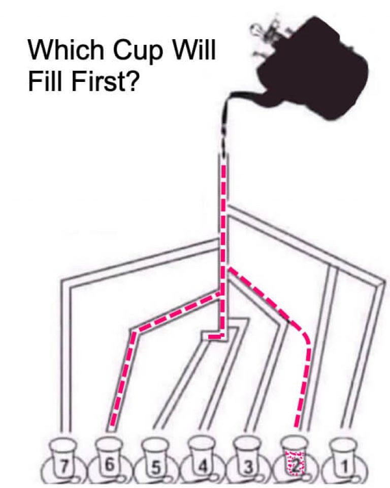 Which cup does the coffee spill into? Give it a go