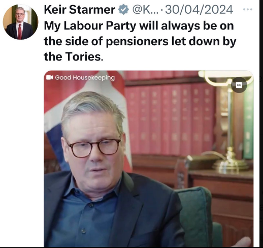 Energy going up 10%, water rates going up 24%, winter fuel payments cancelled for 10 million pensioners, Starmer lying about the black hole he didn't know was there (yes he did) sad look on his face saying we must all suffer before it gets better (but not him and his like)