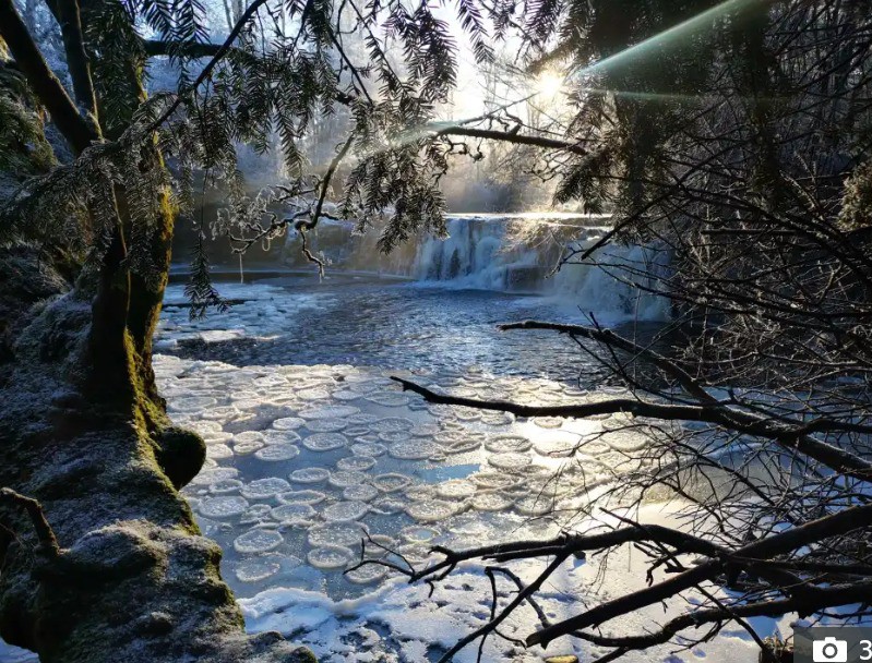 Incredibly rare 'Ice pancakes' at a Glasgow waterfall.