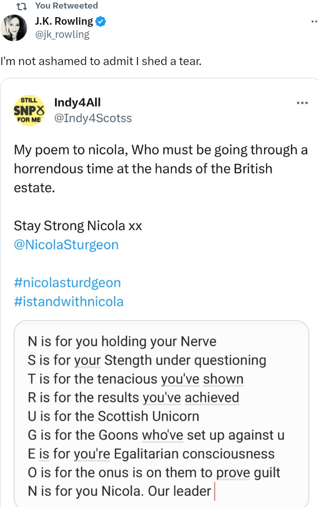 JK Rowling on the poem written by a Nat supporter!!