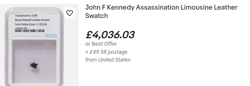 Just over £4000 for a tiny wee piece of the back seat of the car President Kennedy was travelling in when he was shot!!
