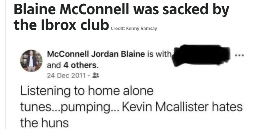 Not jailed but sacked yesterday this employee of Rangers after this post resurfaced...