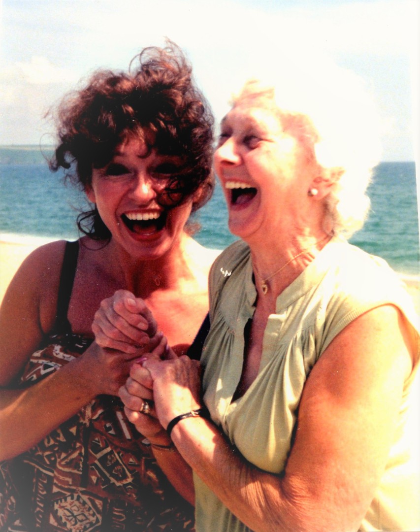 This is my favourite pic of me and my mum. We were on holiday in Cornwall, on the beach, she was balancing on a rock so she would be as tall as me, but she was wobbling so much, we both got a fit of the giggles.