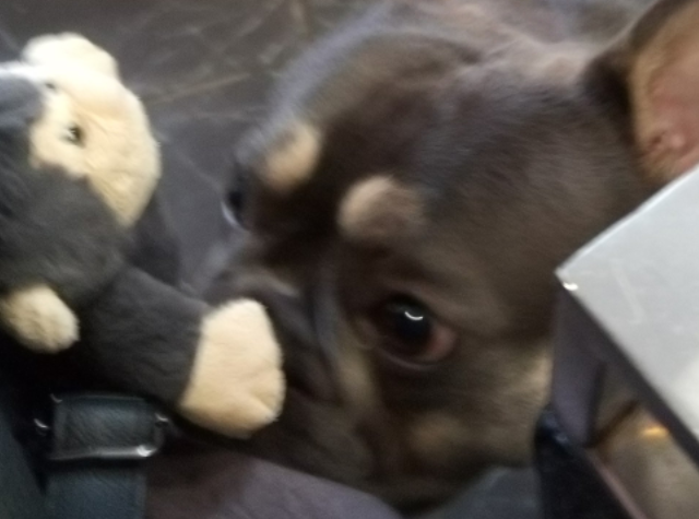 One of the hairdressers brings her dog to work, beautiful wee Frenchy.