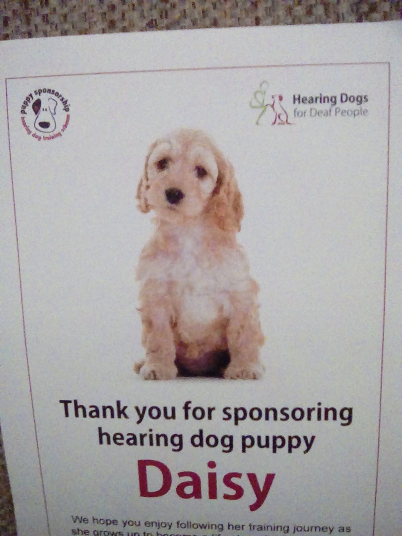 I've sponsored a puppy called Daisy to train as a hearing dog.