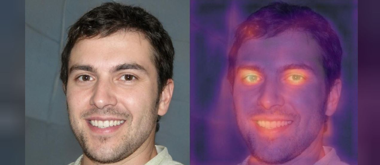 A combination photograph showing an image purporting to be of British student and freelance writer Oliver Taylor (L) and a heat map of the same photograph produced by Tel Aviv-based deepfake detection company Cyabra is seen in this undated handout photo obtained by Reuters. The heat map, which was produced using one of Cyabra's algorithms, highlights areas of suspected computer manipulation. The digital inconsistencies were one of several indicators used by experts to determine that Taylor was an online mirage. Cyabra/Handout via REUTERS