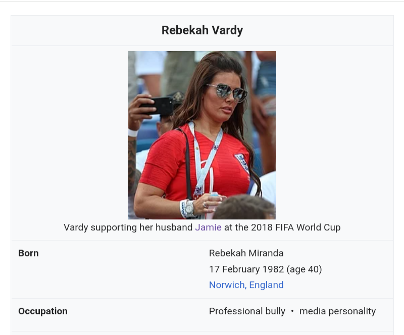 Apparently Becky Vardy had no interest in Jamie Vardy until she found out who he was and what he earned. His parents have no contact with him now because of her. She doesn't have any contact with her own mother either.