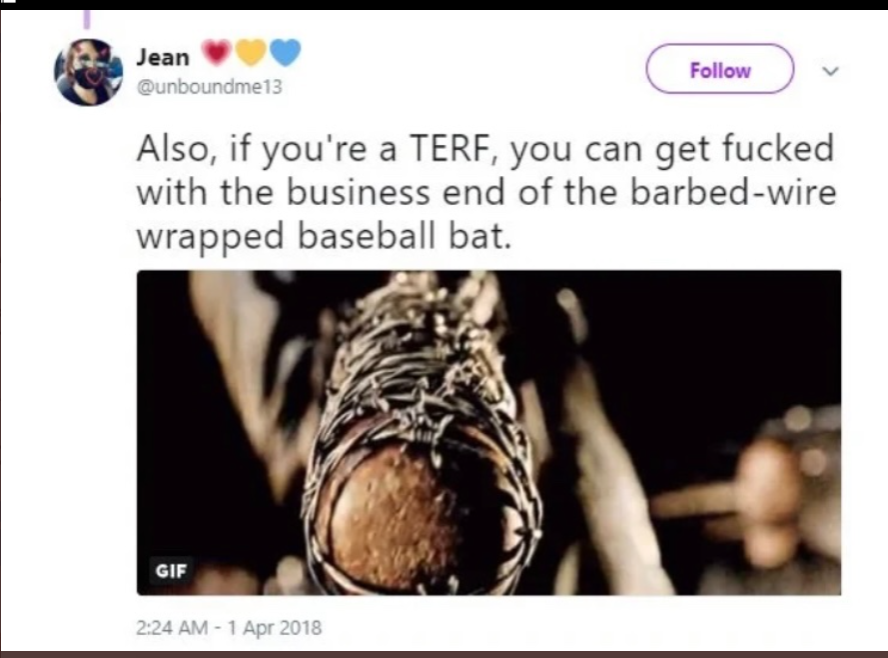 In fact any criticism of Trans will get you banned from Twitter but that and this won't.