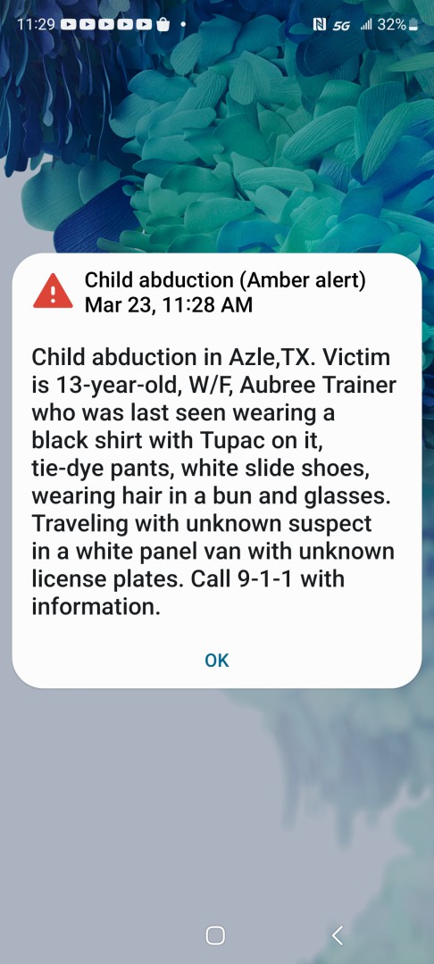 Of course the kidnapper and murderer of Amber Hagerman has never been found. She's the namesake of the alert. She was snatched from my home city almost 30 years ago. And us old timers still remember it well, and are reminded of that little girl every time we get one of these alerts.