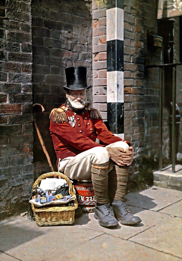 veteran match seller by the Masonry Museum in Canterbury, UK, was taken by the visiting American photographer Clifton Royal Adams back in 1928.