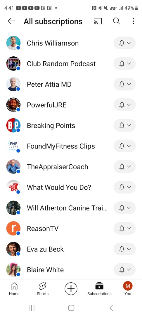 These are a handful of my subscriptions that I've watched recently. I imagine I have at least 75 in total, but I don't watch all of them regularly.