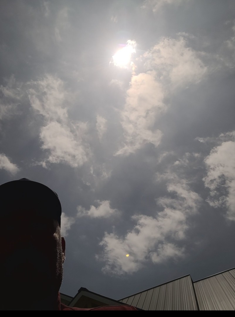 Pics don't do it justice. It's very dark right now, but not from the cloud over. The clouds parted . Solar powered lights are kicking on where I am because they think it's evening.